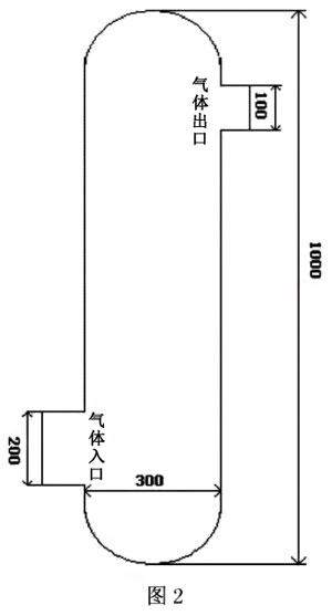 如圖2所示,穩(wěn)流罐包括兩端開(kāi)口且豎直設(shè)置的圓柱形罐體,其兩端開(kāi)口部分別焊接有半圓形罩體,罐體上靠近**和靠近底端的位置分別導(dǎo)通設(shè)置有氣體出口和氣體入口,氣體出口和氣體入口的開(kāi)口方向完全相反,氣體出口和氣體入口的軸線相互平行且分別與圓柱形罐體的中軸線相交: